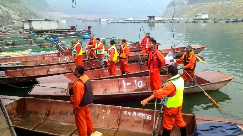 5、组织各生产部门进行夏季防洪防汛应急演练应急演练; 主要针对一旦发生迅情,首先要保证公司财产和人员安全,首先就“防洪防汛应急预案”进行了讲解与学习,之后进行了演练:所有成员无论谁发现或得知灾害气象来临时,必须在第一时间内向负责人和安全员报告;各成员必须听从负责人和安全员的调度(包括人力和物力),以控制险情蔓延、减少损失,并做好善后工作。 演练科目,汛情发生时,站内电源设施被破坏电力中断,我工作人员进行发电等科目,确保鱼站运行正常,保证公司财产安全。二,一旦迅情发生,为了工作人员安全,选择正确的逃生路线。