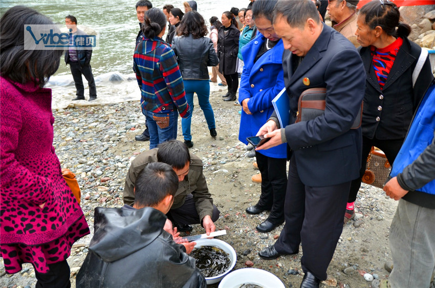 【甘孜州水务局和公证处人员正在对放流苗种进行检测】